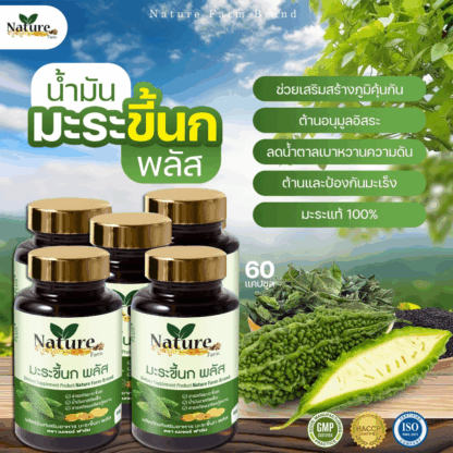 น้ำมันมะระขี้นก พลัส Nature farm Brand ( 60 แคปซูล)(ชุด 5 กระปุก)